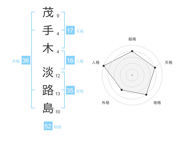 茂手木 淡路島さんの総格は52画の4点!