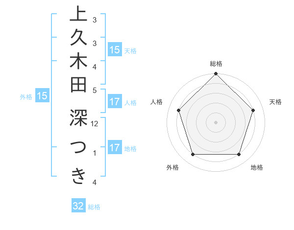 上久木田 深つきさんの総格は32画の5点!