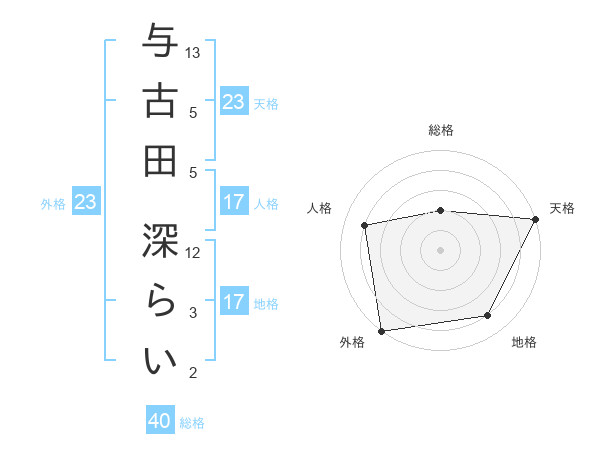 与古田 深らいさんを姓名の画数から五運を鑑定