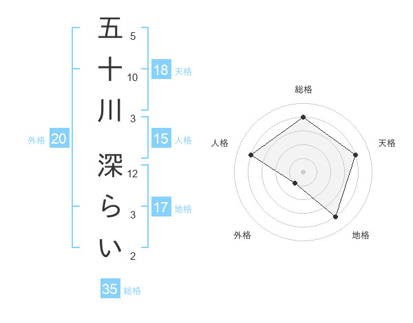 五十川 深らいさんを姓名の画数から五運を鑑定