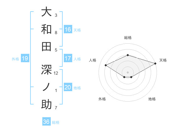 大和田 深ノ助さんを姓名の画数から五運を鑑定