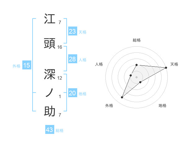 江頭 深ノ助さんを姓名の画数から五運を鑑定