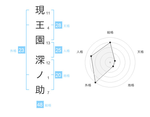 現王園 深ノ助さんの外格は23画の5点!