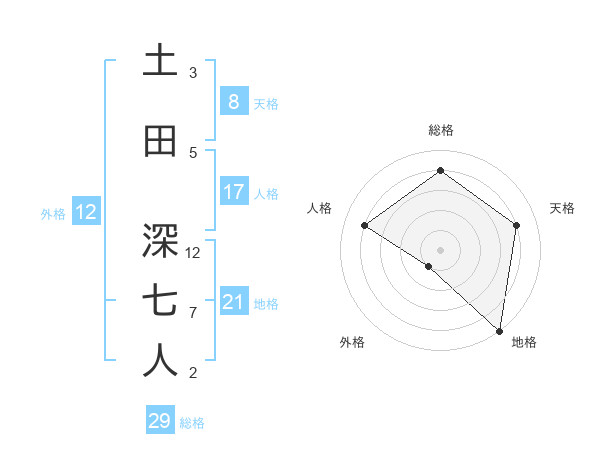 土田 深七人さんの総格は29画の4点!
