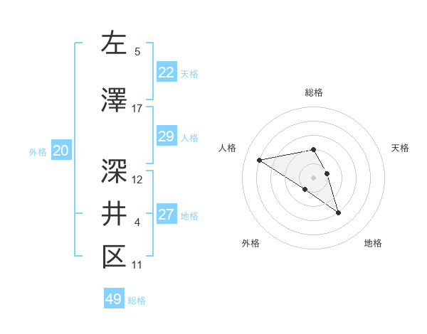 左澤 深井区さんを姓名の画数から五運を鑑定