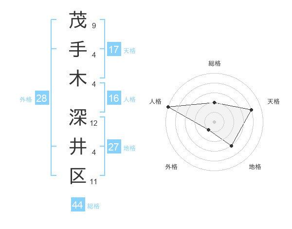 茂手木 深井区さんを姓名の画数から五運を鑑定