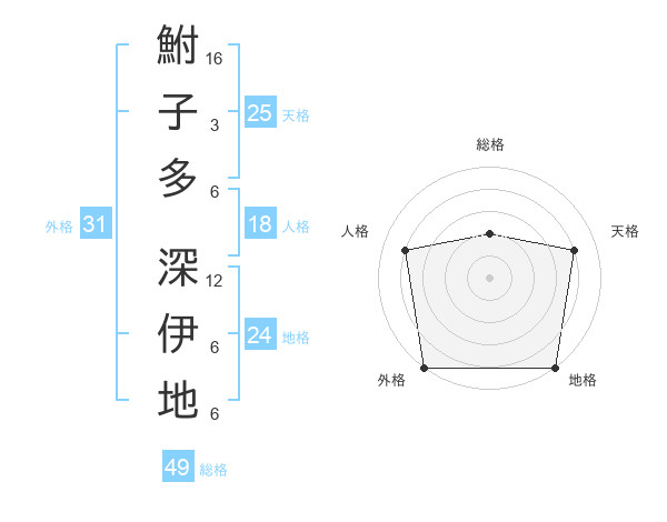 鮒子多 深伊地さんの外格は31画の5点!