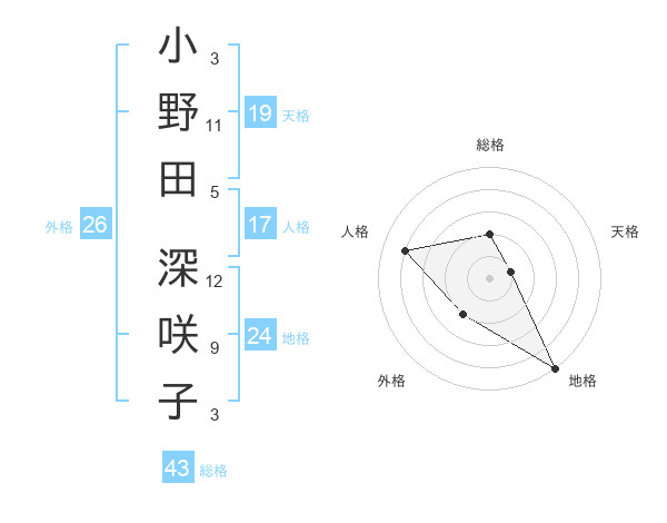 小野田 深咲子さんを姓名の画数から五運を鑑定