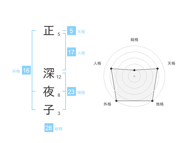 正 深夜子さんの外格は16画の5点!