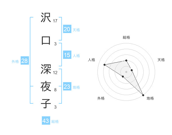 沢口 深夜子さんを姓名の画数から五運を鑑定