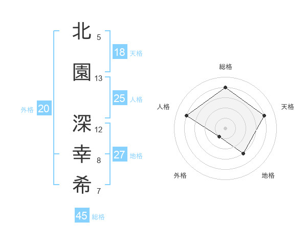 北園 深幸希さんの総格は45画の4点!