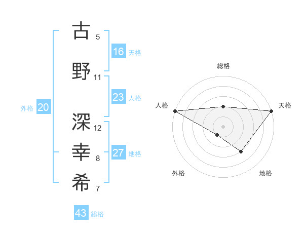 古野 深幸希さんを姓名の画数から五運を鑑定