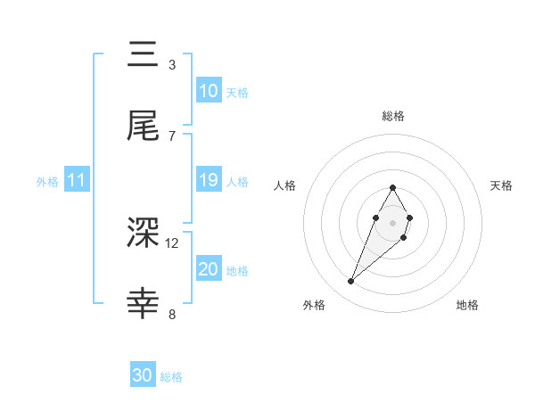 三尾 深幸さんの総格は30画の2点!