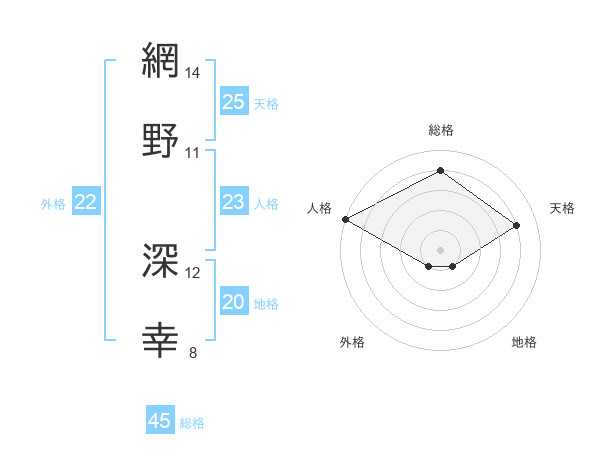 占い結果は姓名判断である以上、良い場合も悪い場合もありますが、決してお名前を誹謗中傷するものでなく、画数の自動計算によって得られたものです。また、本サイトの検索によって得られた鑑定結果で、第三者を誹謗中傷したり名誉を棄損するような行為を禁じます。