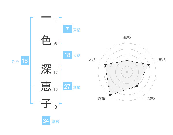 一色 深恵子さんの外格は16画の5点!