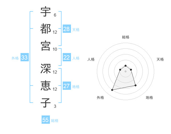 宇都宮 深恵子さんの外格は33画の4点!