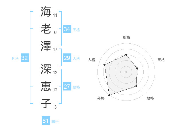海老澤 深恵子さんを姓名の画数から五運を鑑定