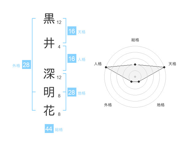 黒井 深明花さんの天格は16画の5点!