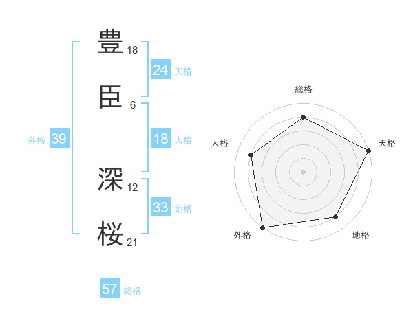 豊臣 深桜さんを姓名の画数から五運を鑑定