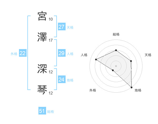 宮澤 深琴さんを姓名の画数から五運を鑑定