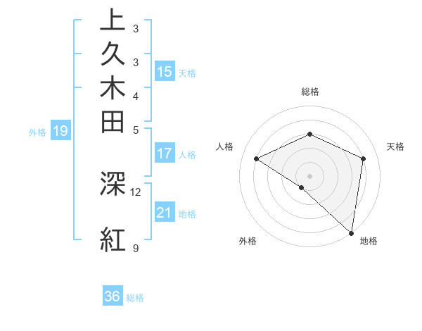 上久木田 深紅さんの天格は15画の4点!