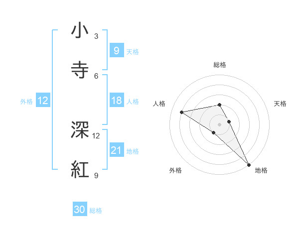 小寺 深紅さんの総格は30画の2点!