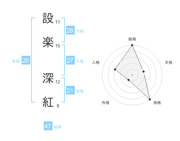 設楽 深紅さんの総格は47画の5点!