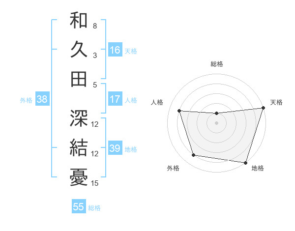 和久田 深結憂さんを姓名の画数から五運を鑑定