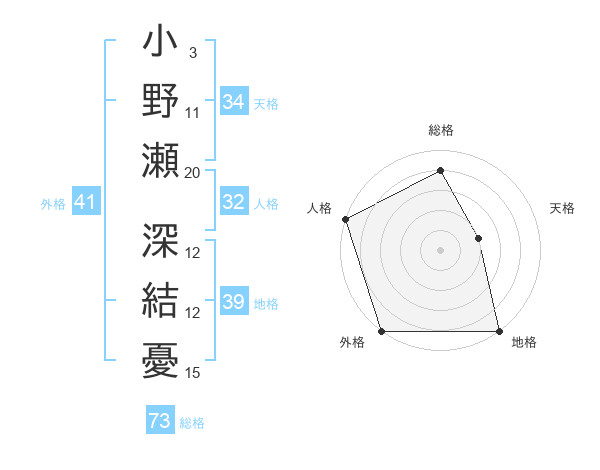 小野瀬 深結憂さんを姓名の画数から五運を鑑定