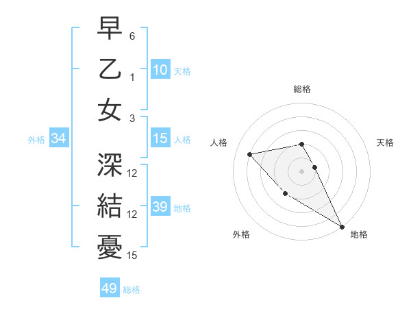 早乙女 深結憂さんの総格は49画の2点