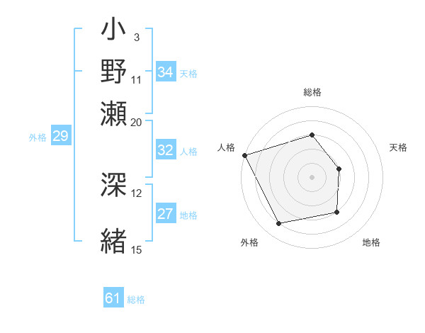 小野瀬 深緒さんを姓名の画数から五運を鑑定