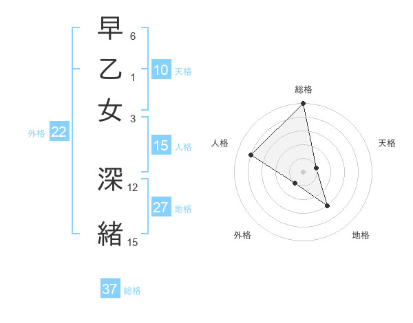 早乙女 深緒さんを姓名の画数から五運を鑑定