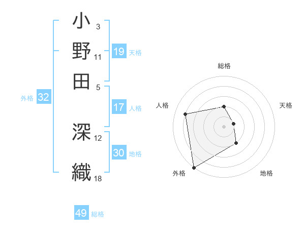 小野田 深織さんの総格は49画の2点!