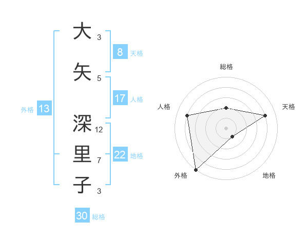 大矢 深里子さんの外格は13画の5点!