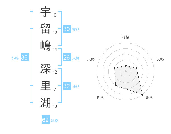 宇留嶋 深里湖さんを姓名の画数から五運を鑑定