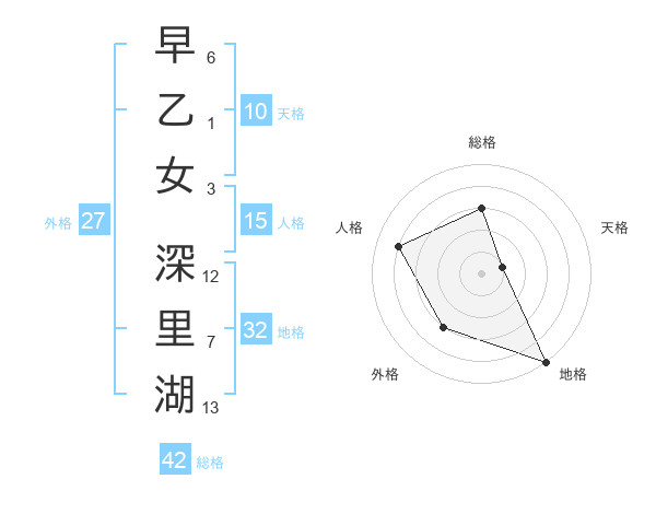 早乙女 深里湖さんを姓名の画数から五運を鑑定