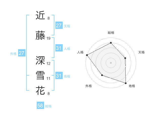 近藤 深雪花さんを姓名の画数から五運を鑑定