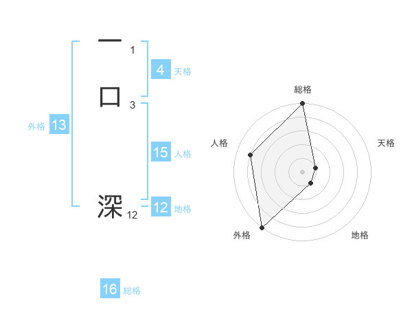 一口 深さんの総格は16画の5点!