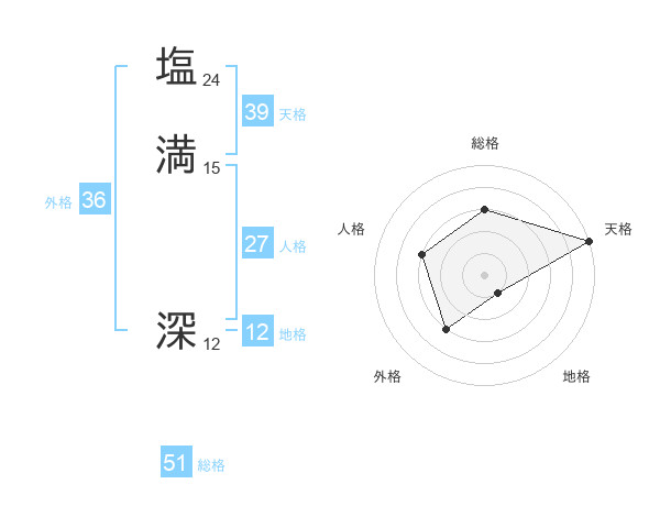 塩満 深さんの総格は51画の3点!