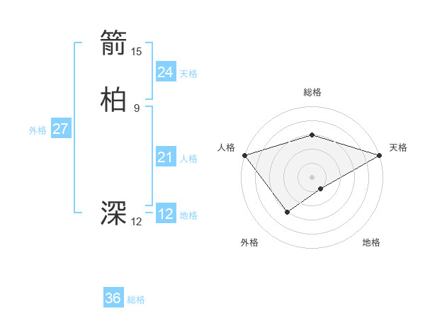 箭柏 深さんの天格は24画の5点!