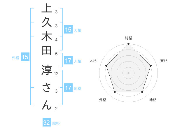 上久木田 淳さんさんを姓名の画数から五運を鑑定