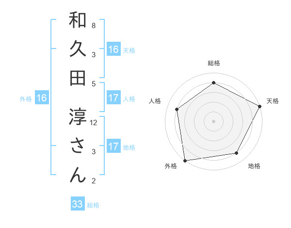 和久田 淳さんさんを姓名の画数から五運を鑑定