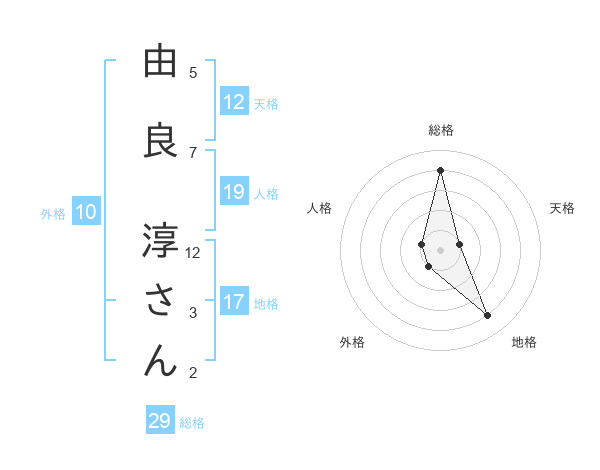 由良 淳さんさんを姓名の画数から五運を鑑定