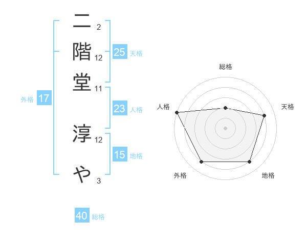 二階堂 淳やさんを姓名の画数から五運を鑑定