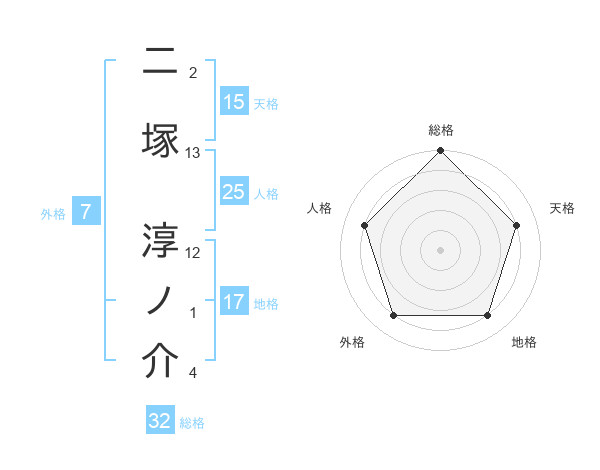 二塚 淳ノ介さんの総格は32画の5点!
