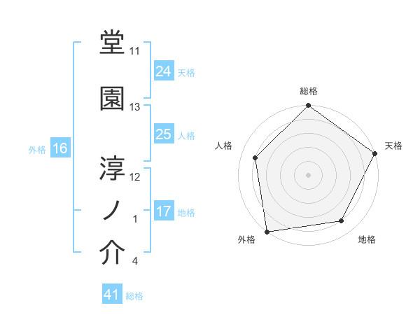 堂園 淳ノ介さんを姓名の画数から五運を鑑定