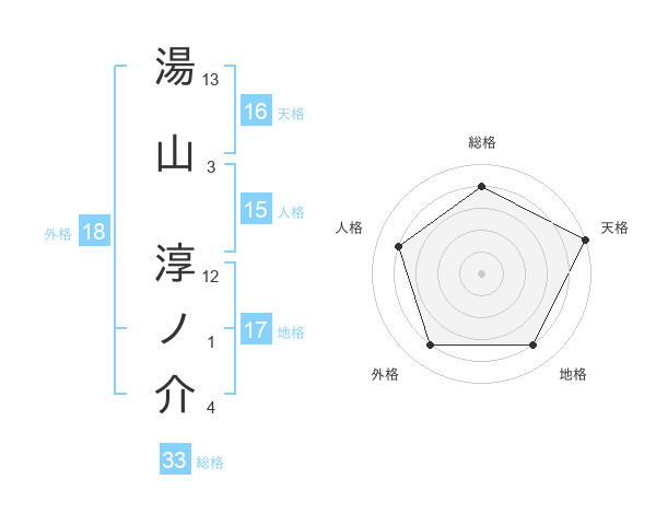 湯山 淳ノ介さんを姓名の画数から五運を鑑定