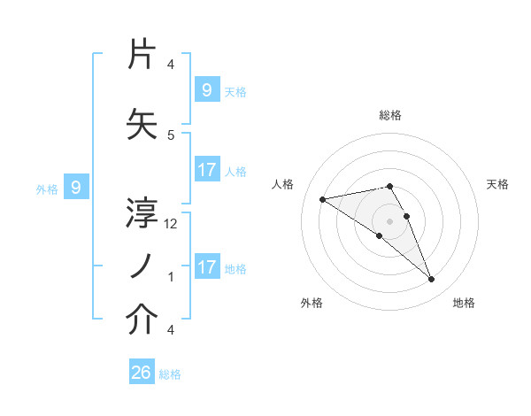 片矢 淳ノ介さんの総格は26画の2点!