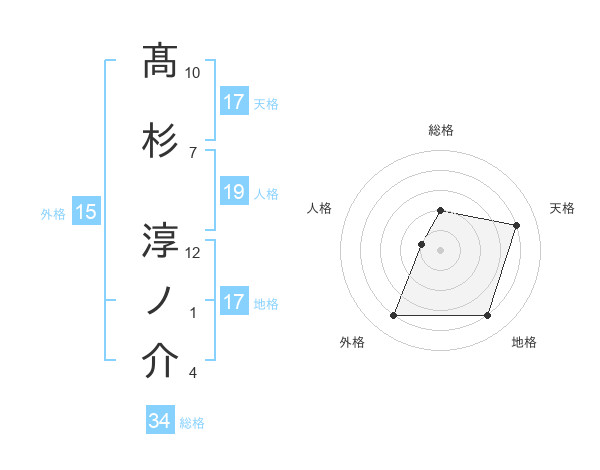 髙杉 淳ノ介さんを姓名の画数から五運を鑑定
