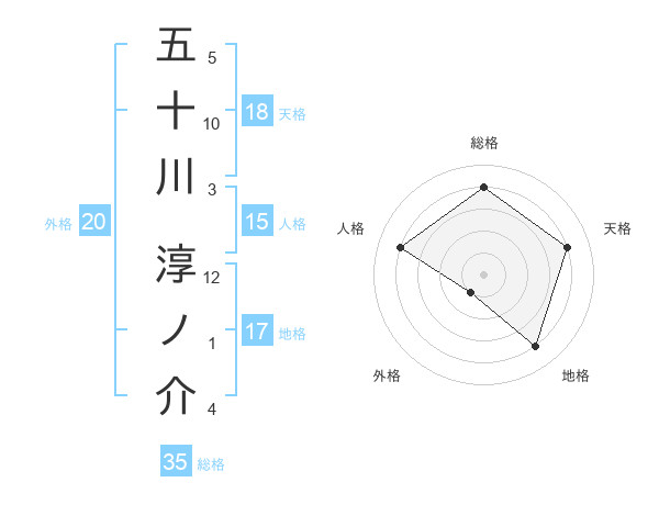 五十川 淳ノ介さんを姓名の画数から五運を鑑定